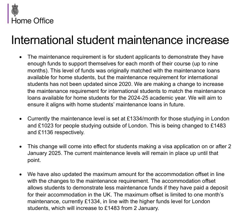 此外,英国内政部还提高了留学生每月的生活费用要求。在 2025 年 1 月 2 日之后申请英国学生签证时,需要预存的留学保证金金额增加,而且在英国的日常生活开销也需要准备更多的资金。